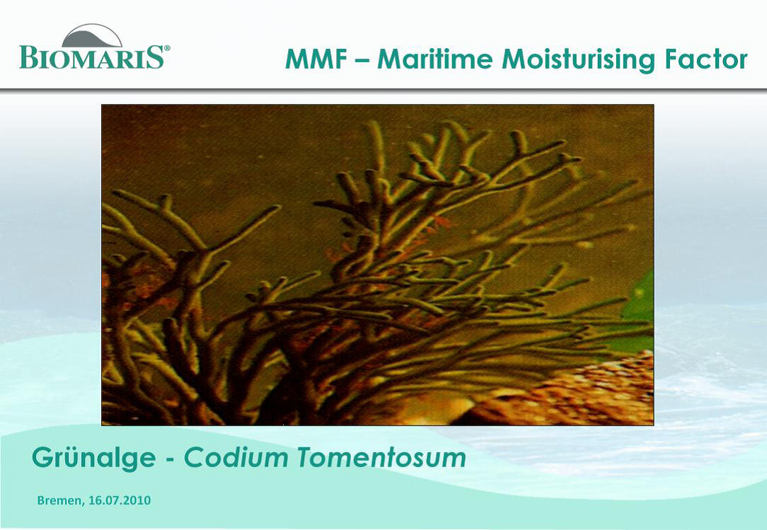Πρόκειται για ένα εκχύλισμα από το πράσινο φύκι “Codium Tomentosum”. Αυτο το φύκι ζει σε αλμυρά νερά που καλύπτεται μόνο σε μεγάλη παλίρροια. Κατά τη διάρκεια μικρής παλίρροιας αυτά τα είδη οξειδώνονται από την υψηλή συγκέντρωση άλατος που προκαλείται από την εξάτμιση του θαλασσινού νερού. Αυτό το φύκι κινδυνεύει να αφυδατωθεί για αυτό παράγει ουσίες ώστε να επιβιώσει, το οποίο σημαίνει ότι ελαττώνει την απώλεια υγρασίας. Αυτά τα θετικά στοιχεία αποκτώνται μέσα από ένα σύμπλεγμα μεθόδων έτσι ώστε να μπορούν να χρησιμοποιηθούν στα προϊόντα της BIOMARIS.